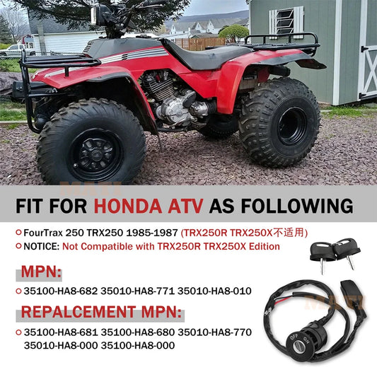 Ignition Key Switch for Honda FourTrax 250 TRX250 1985-1987 OEM: 35100-HA8-682 / 35010-HA8-771 / 35010-HA8-010