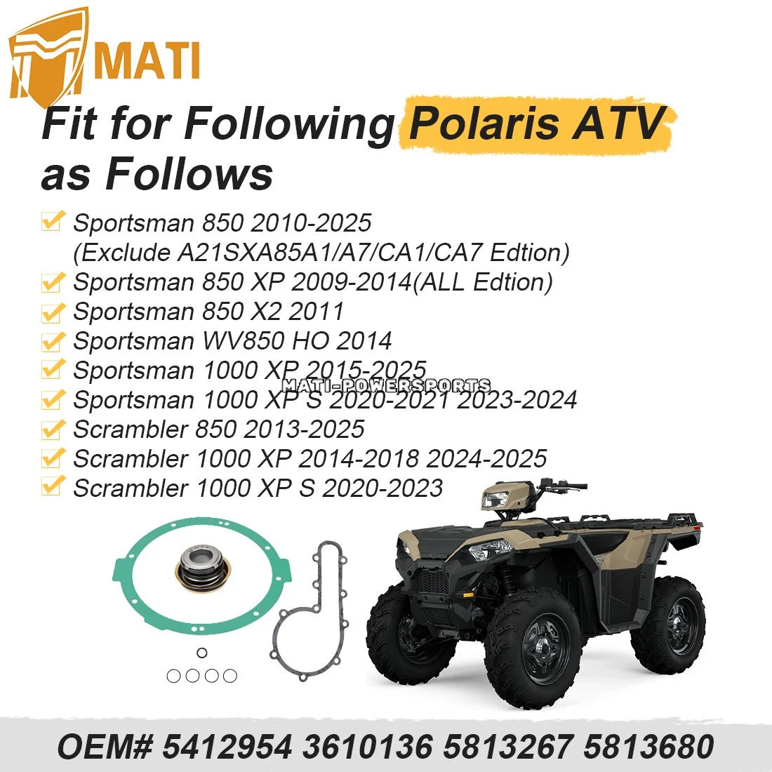 Water Pump Repair w/ Seal Gasket Kit For Sportsman Scrambler 850 1000 XP 2009-2025 5412954 3610136